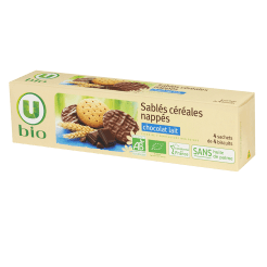 Sablés aux céréales nappés de chocolat au lait, issus de l'agriculture biologique