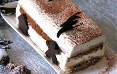 Bûche pain d'épices, poires, mousse mascarpone Bio, sans oeufs ni glutenBûche pain d'épices, poires, mousse mascarpone Bio, sans oeufs ni gluten