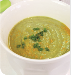 100 g de pointe d’asperges fraîches vertes - 30 g de pomme de terre épluchée - 1 c. à café d’huile de colza - 1 c. à soupe de lait de coco - 3 mesurettes de poudre Althéra® ou Alfamino®