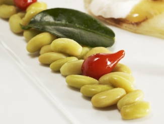 Disposer les flageolets cuisinés aux agrumes sur l'assiette.