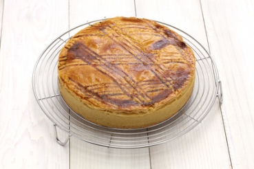 Pour la pâte : 150 g de farine de riz - 150 g de farine de maïs - 1 yaourt au soja - 120 g de beurre végétal adapté  - 150 g de sucre roux - 1 sachet de levure chimique sans gluten - 1 pincée de sel - Pour la crème : 40 cl de lait de soja - 40 g de fécule de maïs - 1 cuillère à soupe d’huile d'olive - 50 g de sucre roux - 50 g de poudre d'amande - 1 gousse de vanille - optionnel : 2 cuillères à soupe de rhum