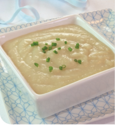 150 g de pomme de terre - 10 g d’oignon - 10 g de jambon type LE BON PARIS à l’étouffée conservation sans nitrite HERTA® - 60 mL d’eau minérale ou de source convenant à l’alimentation du nourrisson - 1 c. à café d’huile de colza - 4 mesurettes de poudre Althéra® ou Alfamino®