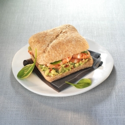 4 Brasserie Burger Jacquet - 200 g de crevettes roses décortiquées - 1 avocat - 1 oignon nouveau - 1 tomate - 1 gousse d'ail hachée - 1 petit piment oiseau - 50 g de pousses d'épinards - 1/2 citron vert - 2 pincées de cumin moulu - 4 brins de coriandre gluten