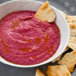 HOUMOUS À LA BETTERAVE ET CRACKERS AUX GRAINESHOUMOUS À LA BETTERAVE ET CRACKERS AUX GRAINES