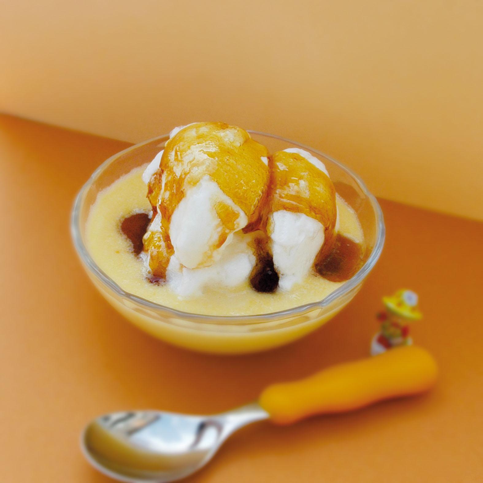 Fouetter les jaunes d’œuf et le sucre jusqu’à obtenir un mélange blanchi et crémeux. Y ajouter ensuite la maïzena. Pendant ce temps, faire bouillir le «lait» de riz puis le verser sur le mélange. Fouetter ensuite vigoureusement la préparation, et remettre à cuire l’ensemble à feu moyen en fouettant jusqu’à l’obtention d’une crème. La laisser refroidir ensuite un peu (env. 60 °C).