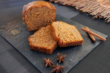 Mélange d’épices : 3 cuillères à café d’épices pour pain d’épice - 230 ml de lait de riz vanillé - 200 g de miel - 60 g de sucre de canne complet - 1 cuillère à soupe de fleur d’oranger. Pain d’épice sans gluten : 200 g de farine de riz semi complète - 30 g de farine de tapioca - 1 cuillère à soupe de fécule de pomme de terre - 50 g de farine de pois chiche - 1 cuillère à café de gomme de guar, -½ cuillère de bicarbonate - 60 g de beurre végétal adapté - 1 cuillère à café de jus de citron.