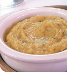 Mixez avec les 30 mL d’eau et le boulgour, ajoutez les mesurettes. Mélangez, vérifiez la température avant de faire déguster votre ratatouille à votre bébé.