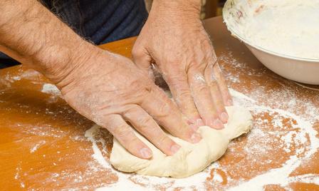 Pâte à pizza sans gluten et sans oeuf : 100 g de farine de millet - 100 g de farine de riz - 5 cuillères à soupe d’huile d’olive - herbes de Provence - sel - Eau froide. Garniture : 1 boîte de coulis 100% tomates - 1 poivron - 1/2 aubergine - 3 oignons - 6 champignons de Paris - 3 tranches de lard fumé - 1 poignée d’olives